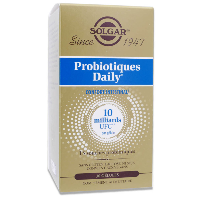 SOLGAR PROBIOTIQUES DAILY 30 GELULES est disponible en vente en ligne à prix discount sur Pharmashopdiscount.