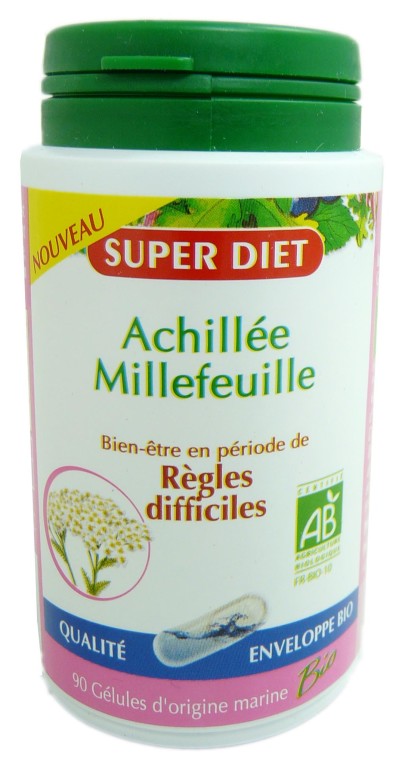 SUPERDIET propose une large gamme de compléments alimentaires à la fois efficaces et sûrs, élaborés avec des plantes issues majoritairement de l’agriculture biologique, pour offrir le meilleur de la nature et apporter des solutions naturelles à tous nos besoins santé et bien-être. ACHILLEE MILLEFEUILLE, conditionné sous forme de gélules d’origine marine, est un complément alimentaire dont la consommation soulage les douleurs menstruelles. L'Achillée millefeuille est une plante herbacée vivace de la famille des Astéracées, connue également sous le nom d’Herbe à dindes, aux propriétés antispasmodiques traditionnellement reconnues.