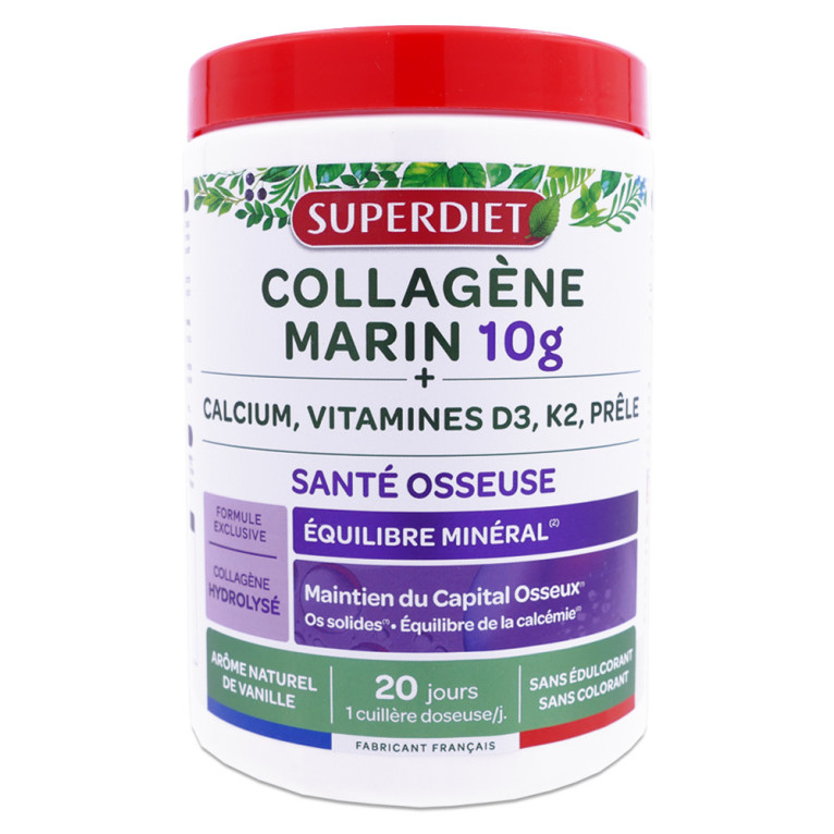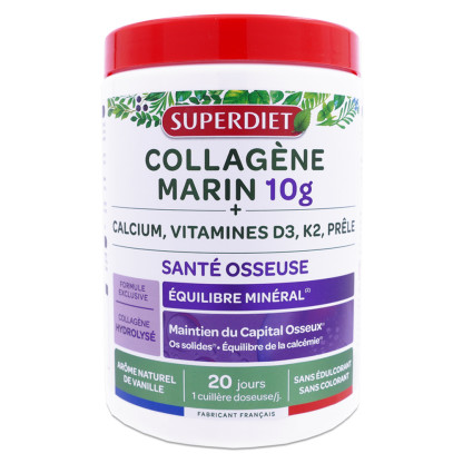 SUPERDIET COLLAGÈNE MARIN 10G SANTE OSSEUSE AROME VANILLE 240G est disponible en vente en ligne à prix discount.