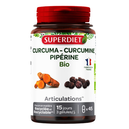 SUPERDIET CURCUMA CURCUMINE PIPERINE BIO 45 GELULES est en vente en ligne sur le site de votre parapharmacie à prix discount.
