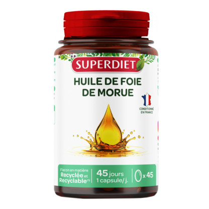 SUPERDIET HUILE DE FOIE DE MORUE 45 CAPSULES, en vente en ligne sur le site de votre parapharmacie à prix discount !