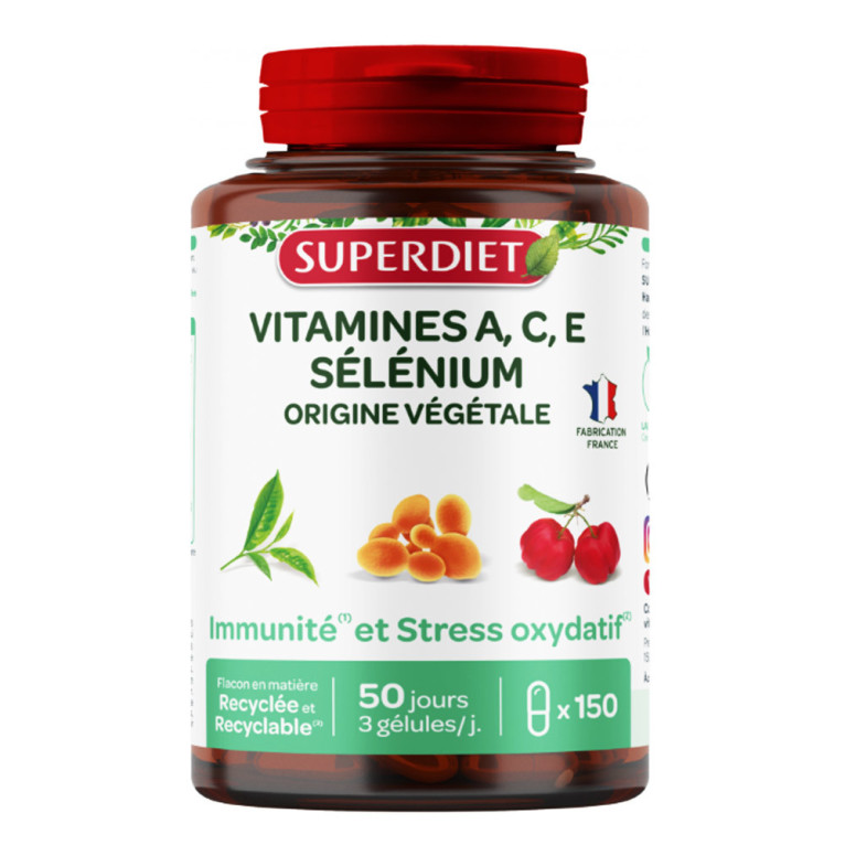 SUPERDIET VITAMINES A C E SELENIUM 150 GELULES, en vente en ligne sur le site de votre parapharmacie à prix discount !