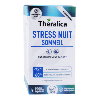 Stress Nuit Sommeil de THERALICA discount, le complément alimentaire conditionné sous forme de gélules végétales disponible dans votre parapharmacie en ligne à prix discount.