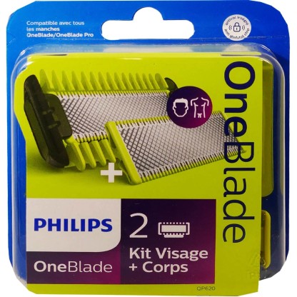 I Le Kit Visage + Corps ONEBLADE de PHILIPS à prix discount dans votre parapharmacie en ligne, est une révolution pour un rasage électrique précis des zones sensibles du corps et de la barbe. 2 lames : 1 lame pour le visage ; 1 lame pour le corps. Compatible avec les manches OneBlade et OneBlade Pro.