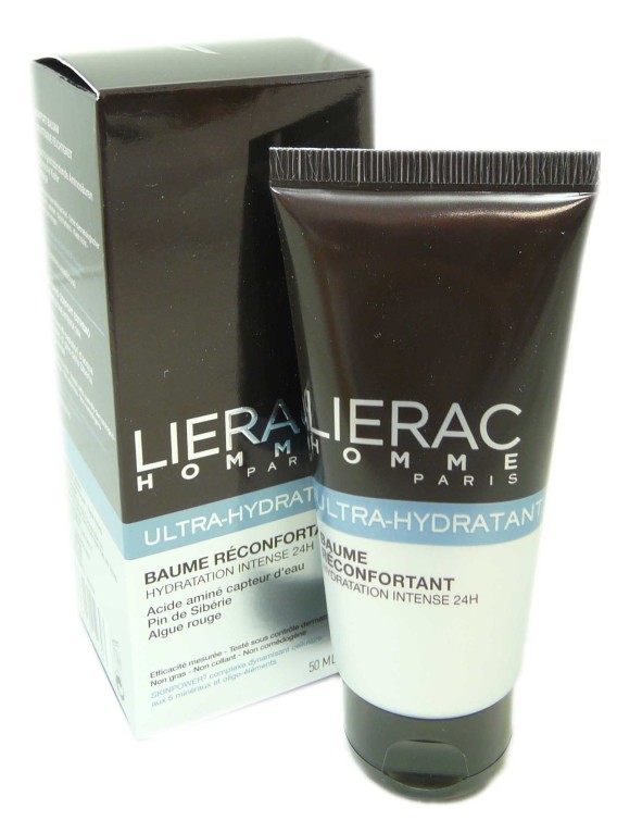 LIERAC est la première marque française dermo-cosmétique spécialisée dans la correction du vieillissement et des désordres cutanés, et instauratrice de la « cosmétique technique » qui allie plaisir des sens et efficacité. La gamme HOMME est constituée de soins d’exception développés pour apporter une réponse efficace aux besoins spécifiques masculins : soins anti-fatigue, anti-âge, hygiène quotidienne… ULTRA HYDRATANT Baume réconfortant hydratation intense de LIERAC HOMME, à la formule non grasse et non collante, est spécialement conçu pour offrir 24H d’hydratation, protéger et rétablir le confort de la peau. Sa formule est composée du complexe SKINPOWER5 constitué de 5 minéraux et oligo-éléments : Calcium, Zinc, Magnésium, Cuivre, Manganèse conçu pour potentialiser l’efficacité des autres actifs, d’un acide aminé capteur d’eau et d’algue rouge capables de relancer le système d’irrigation naturelle de la peau, de pin de Sibérie réparateur et protecteur, d’agents hydratants dosés à forte concentration et de vitamine E pour rétablir le confort de l’épiderme.