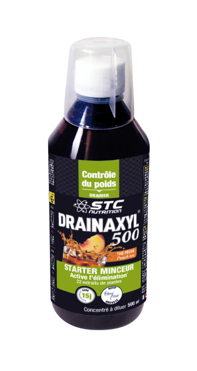 Les laboratoires INELDEA créés en 2003, sont spécialisés dans le développement de compléments alimentaires naturels et cosmétiques de haute performance, conçus pour offrir des solutions à base d'actifs et ingrédients naturels, des formules complètes et biodisponibles et des formes galéniques adaptées et pratiques. La marque STC Nutrition offre à travers des gammes spécifiques (Perte de poids, Musculation,Énergie, Nutrition) des solutions nutritionnelles aux consommateurs désireux d’améliorer leur endurance sportive, développer leur masse musculaire, ou maîtriser leur poids. DRAINAXYL 500 au goût thé-pêche est un complément alimentaire en solution buvable à diluer, composé de 20 actifs végétaux (Fenouil, Reine des prés, Verge d’or, Pissenlit, Guarana, Carvi, Piloselle, Chiendent, Artichaut, Thé vert, Maté, Papaye, Romarin, Bouleau, Chardon marie, Gingembre, Menthe, Mélilot, Hamamélis et Vigne rouge) et du complexe Elim’real® (actif breveté 100% naturel) à base de 6 plantes. Sa formule associe du thé vert qui aide au métabolisme des graisses, du maté utilisé pour faciliter le drainage de l'organisme, du guarana qui facilite l'amincissement dans le cadre d'un régime minceur et du fenouil qui contribue à soutenir la digestion. La formule est complétée par de la reine des prés qui draine les articulations.Ce complément alimentaire est un concentré à diluer 100% Vegan.