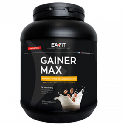 GAINER MAX Construction musculaire d’EAFIT discount, le complément spécifique du sportif dans votre parapharmacie en ligne à prix discount, pour augmenter la croissance musculaire rapide chez les personnes sportives. Goût Cappuccino