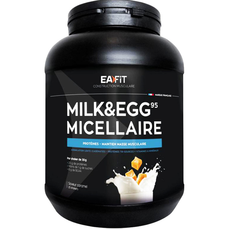 MILK & EGG 95 + a été spécifiquement reformulée pour répondre parfaitement à toutes les personnes cherchant à améliorer la prise et l’entretien de la masse musculaire. Sa formule associe 3 sources de protéines de haute valeur biologique : le caséinate de calcium pour un apport protéique, de l’isolat de protéine de lactosérum obtenue par chromatographie échangeuse d’ions et la protéine de blanc d’oeuf. Cette association de protéines contribue à une synthèse protéique musculaire optimale. La nouvelle formule de MILK&EGG 95+ est hautement dosée en protéines avec plus de 84% de protéines, pauvre en sucres et en lipides, et apporte également 22.57 g de BCAA pour 100 g de protéines.