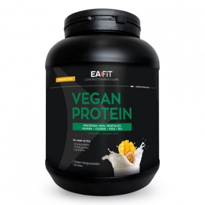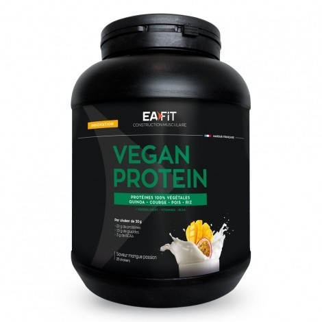 VEGAN PROTEIN discount d’EAFIT, la protéine goût mangue passion pour accompagner les sportifs végétariens, en ligne dans votre parapharmacie discount.
