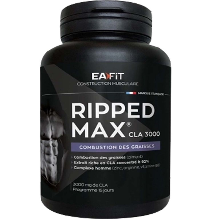 Ripped Max CLA 3000 Combustion des Graisses d’EAFIT, le complément alimentaire à base de minéraux et d’acide linoléique, en gélules, dans votre parapharmacie en ligne à prix discount.