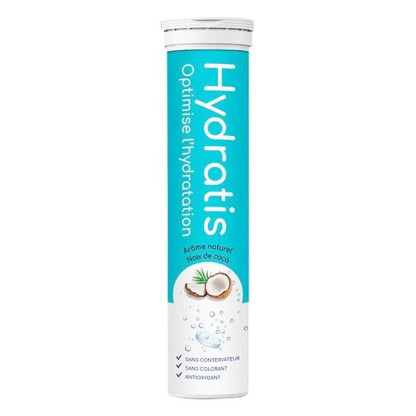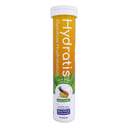 Découvrez les pastilles effervescentes HYDRATIS, formulées par le laboratoire Hydratis, spécialisé dans les produits de santé naturels. Ces pastilles contiennent des ingrédients essentiels tels que des sels minéraux. Hydratis se présente comme l'allié indispensable dans des circonstances nécessitant une hydratation renforcée, y compris lors des activités physiques intensives, des épisodes de chaleur extrême, ainsi que pour contrer les effets de la consommation d'alcool. Faciles à transporter et à utiliser, ces pastilles sont idéales en toutes circonstances. Vous pourrez choisir l'arôme de votre choix.