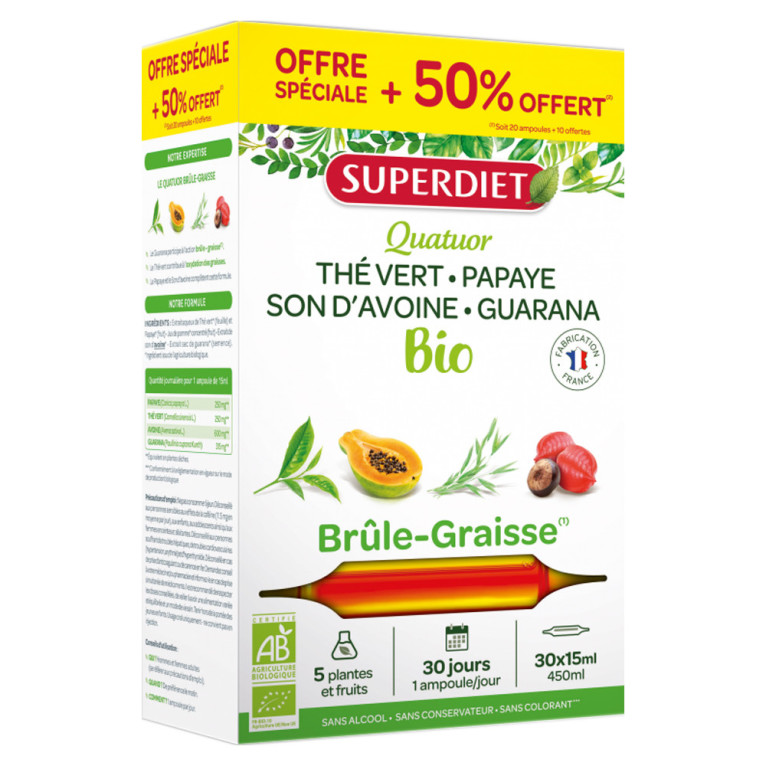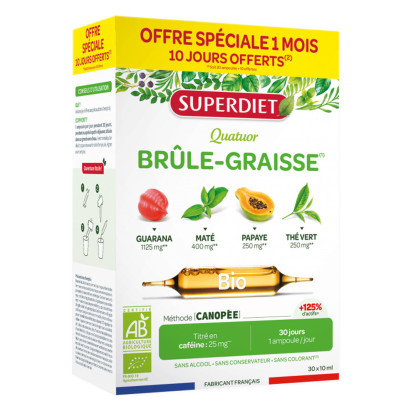 SUPER DIET QUATUOR BRULE GRAISSE 30 AMPOULES est disponible en vente en ligne à prix discount sur Pharmashopdiscount.