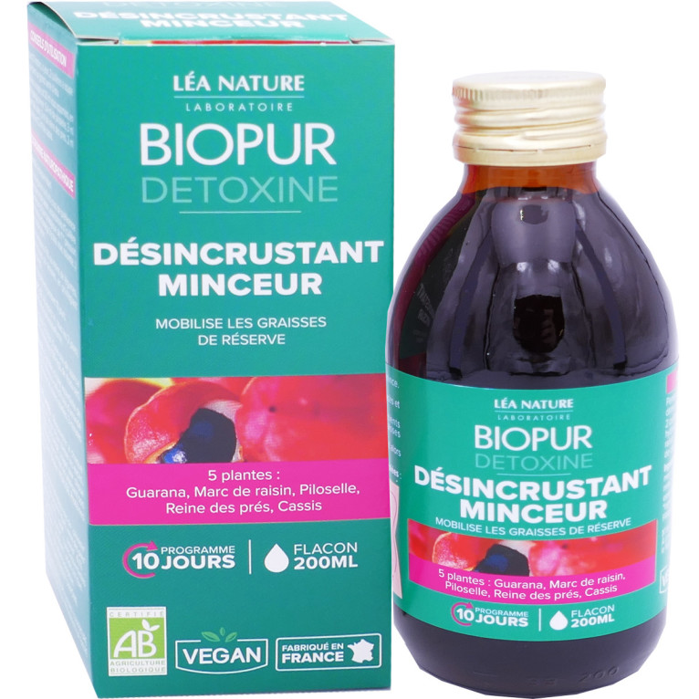 BIOPUR Détoxine Désincrustant Minceur des laboratoires LEA NATURE discount, un complément alimentaire en solution buvable à base de 5 plantes: Guarana, Marc de raisin, piloselle, reine des prés, Cassis, dans votre parapharmacie en ligne à prix discount.