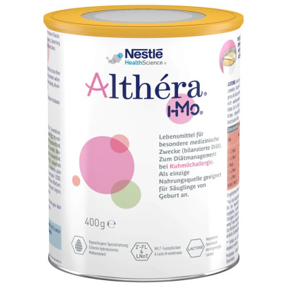 ALTHÉRA HMO 400G : une denrée alimentaire spécialement conçue pour les fins médicales, en vente en ligne sur le site de votre parapharmacie à prix discount. Idéale dès la naissance, cette formule unique répond aux besoins nutritionnels spécifiques des nourrissons lors d'allergie aux protéines de lait de vache.