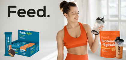 Cette barre hyperprotéinée et faible en sucre (moins de 3g) est élaborée par le laboratoire FEED, spécialisé dans les produits nutritionnels de haute qualité.