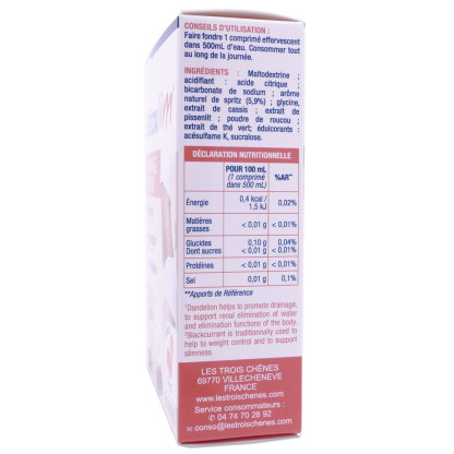 Les 3 Chênes, un laboratoire reconnu pour ses formulations naturelles, propose ce complément alimentaire à base d'extrait de cassis et de pissenlit.