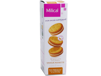 Les Biscuits fourrés discount MILICAL, la collation gourmande pour allier équilibre alimentaire et plaisir, dans votre parapharmacie en ligne à prix discount. Saveur noisette.