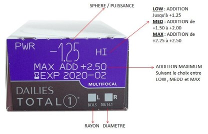 Les Dailies Total 1 pour la presbytie intègrent une technologie innovante. Cette lentille de contact offre une haut niveau de lubrification sur toute la surface de la lentille et maximise la respirabilité (perméabilité à l'oxygéne) comparé à n'importe quelle autre lentille journalière jetable du marché. Ces lentilles de contact apportent un confort exceptionnel tout au long de la journée tout en présentant les avantages d'une lentilles jetable qui ne nécessitent aucun entretien.Vous les portez occasionnellement? Retrouvez-les également en format de 30 lentilles!