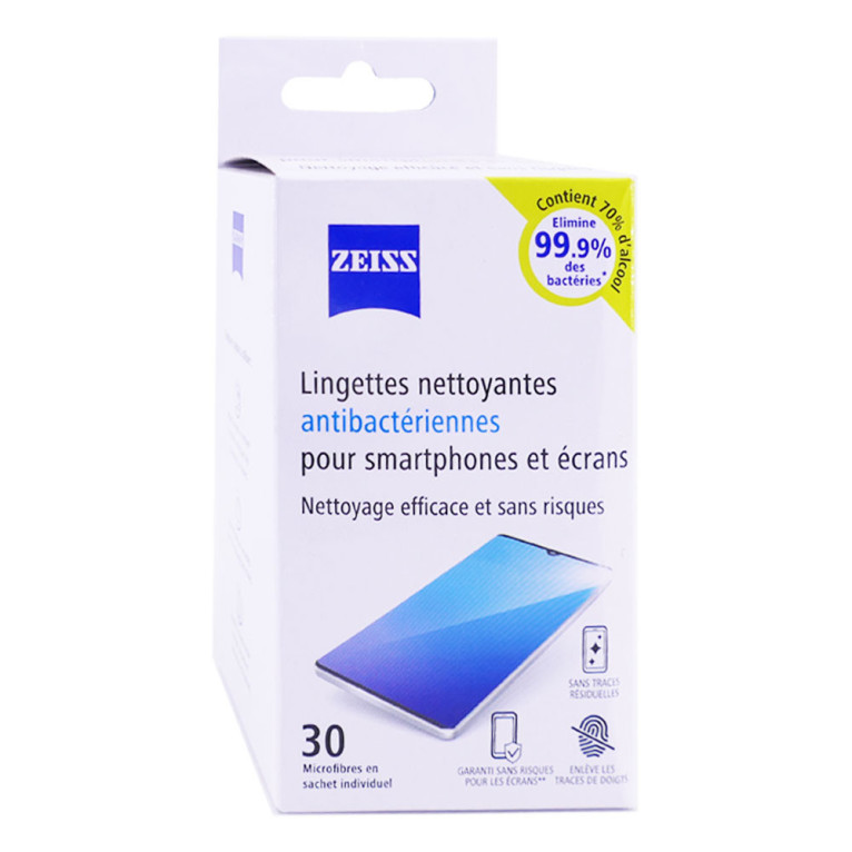 ZEISS LINGETTES NETTOYANTES ANTIBACTERIENNES 30 LINGETTES