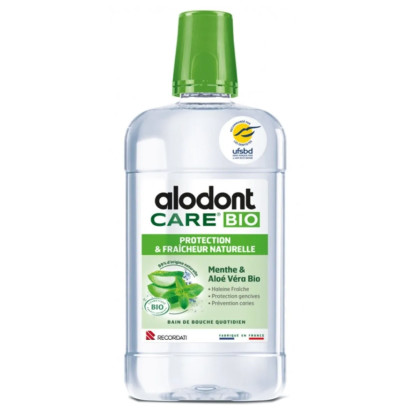 Le bain de bouche Protection & Fraîcheur ALODONT CARE BIO à prix discount, un bain de bouche aux ingrédients bio dans votre parapharmacie en ligne discount, qui s’utilise au quotidien et complète le brossage des dents habituels pour une haleine fraiche et des gencives saines.