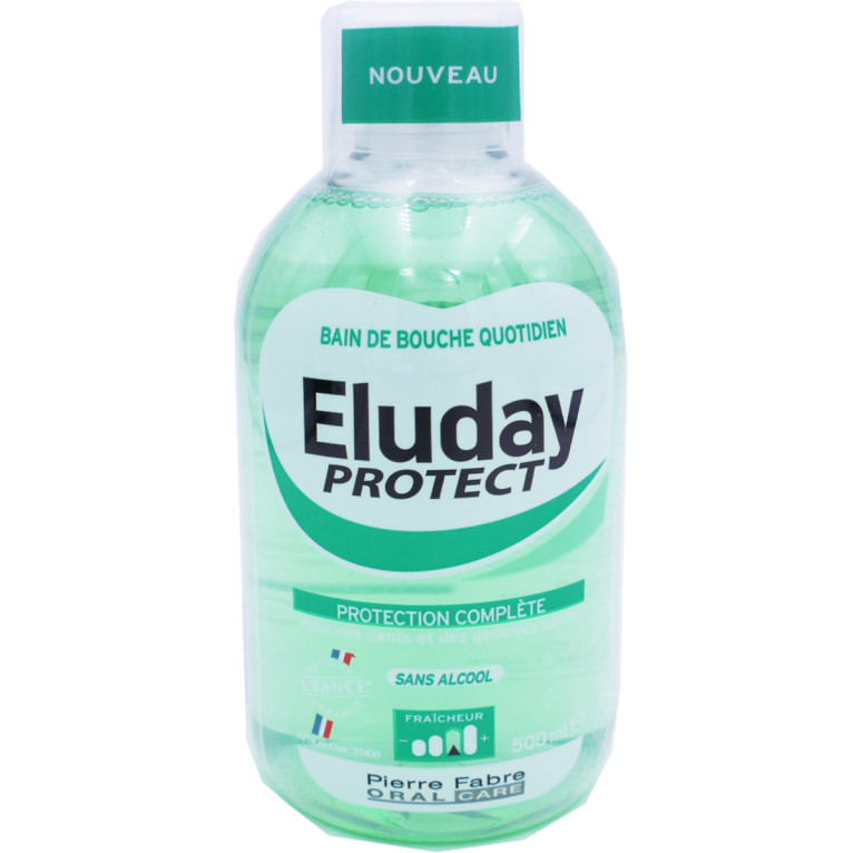 Eluday Protect Protection complète discount de Pierre Fabre Oral Care, un bain de bouche sans alcool pour protéger efficacement les dents et les gencives, dans votre parapharmacie en ligne à prix discount.