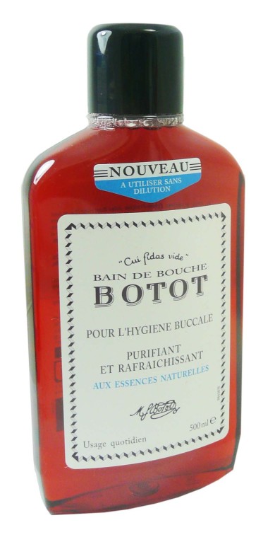 Les produits BOTOT sont célèbres par son eau de bouche créée pour le roi Louis XV par son médecin personnel Philippe Botot pour pallier aux problèmes dentaires du roi. Le bain de bouche composé d’agents antibactériens, et d’essences naturelles à base d’huiles essentielles végétales de girofle, cannelle, et essence de menthe très concentrées, va entre les brossages où quand le besoin s’en fait sentir, purifier et rafraîchir la bouche pour une hygiène buccale optimale tout au long de la journée. Pratique, le bain de bouche BOTOT ne nécessite pas d’être dilué.