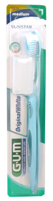 La brosse à dents Original White Médium de SUNSTAR GUM, la brosse à dents qui nettoie efficacement tout en prenant soin des dents pour leur redonner de la blancheur.