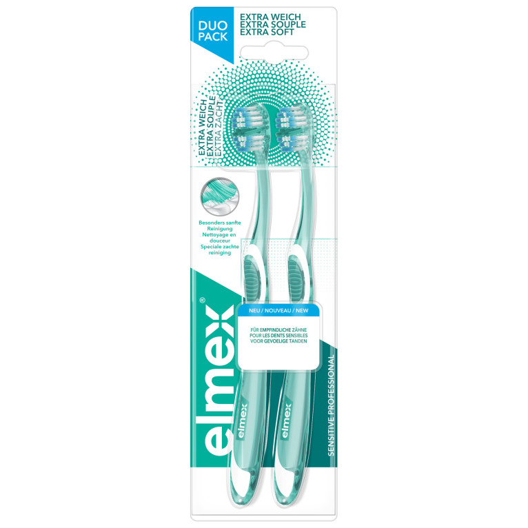 Le laboratoire ELMEX a conçu des produits d’hygiène dentaires reconnus par des dentistes pour des soins d’hygiène bucco-dentaire, blancheur des dents, prévention caries… La brosse à dents possède des brins verts en X plus longs extra-souples et coniques qui nettoient entre les dents sans blesser tout en douceur (études faites au sein d'universités suisses et américaines). Sa tête est enrobée d’une matière souple qui permet de ne pas blesser les gencives. Son manche et son butoir permettent un bon maintien grâce à sa matière antidérapante.