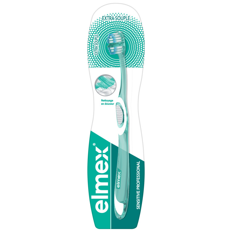 La brosse à dents sensitive Elmex nettoie tout en douceur les collets dentaires et les dents sensibles.