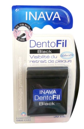 INAVA est une marque engagée depuis de nombreuses années auprès des professionnels de la santé et de l’hygiène bucco-dentaire. INAVA développe des accessoires de brossage de très haute technicité : brosses à dents (hygiène quotidienne, brosses spécifiques, enfants), brossettes interdentaires, fil dentaire… DENTOFIL Black d'INAVA est un fil dentaire fin ciré, imprégné de Chlorhexidine, spécialement conçu pour éliminer efficacement les résidus alimentaires dans les espaces interdentaires difficiles d’accès avec le simple brossage, et la plaque dentaire. Sa couleur sombre permet de constater le retrait efficace de la plaque. Fil non aromatisé, distributeur 50 m.
