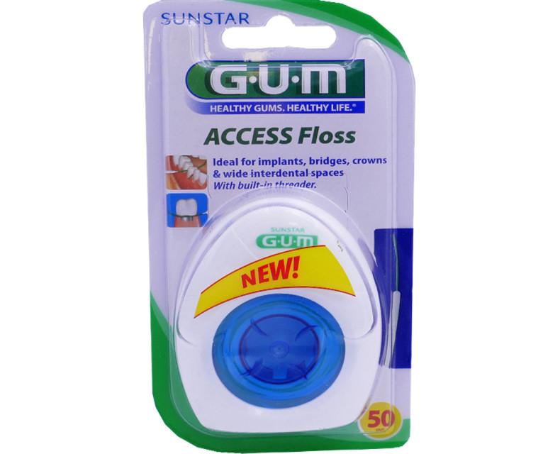Les laboratoires SUNSTAR GUM sont spécialisés dans l’hygiène bucco-dentaire (bain de bouches, dentifrices,…) Access Floss est un fil dentaire qui lutte contre la plaque dentaire et la formation de carie en éliminant tous les résidus entre les dents et préserve les gencives des inflammations. Sa fibre très douce va tout en douceur passer entre les dents pour éliminer les colorations et sur les gencives pour un soin d’hygiène optimale sans douleur. Efficace lors de port de couronnes, bridges, implants et lors d’espaces interdentaires larges, le fil Acces Floss composé de 2 parties passe-fil rigides se dilate et permet un passage efficace entre les dents en s’adaptant à l’espace interdentaire. En utilisant le fil dentaire après chaque brossage ou entre les brossages, les dents et les gencives restent propres et saines.