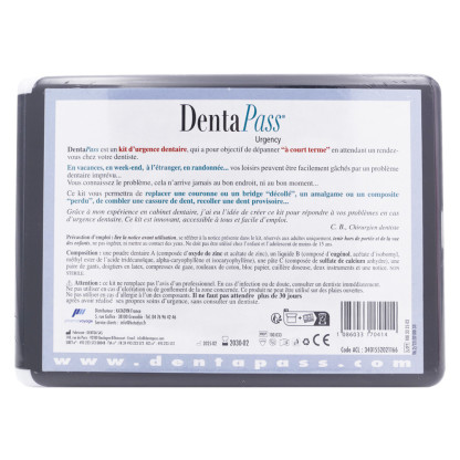 DENTA PASS KIT URGENCE DENTAIRE est en vente en ligne sur le site de votre parapharmacie à prix discount, conçu pour répondre aux besoins d'urgence dentaire à domicile.