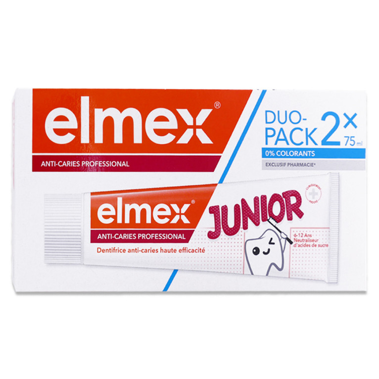 ELMEX ANTI-CARIES PROFESSIONNEL DENTIFRICE JUNIOR 2 tubes de 75ML est en vente en ligne sur le site de votre parapharmacie à prix discount, conçu pour l'hygiène bucco-dentaire des enfants de 6 à 12 ans.