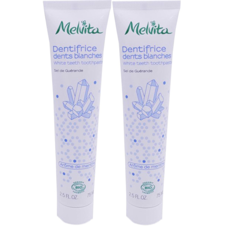 MELVITA, marque pionnière de la cosmétique BIO, est née de la passion d’hommes pour le miel, cette merveilleuse substance située entre le mode animal et végétal. Depuis près de 40 ans, MELVITA développe des produits dermo-cosmétiques en allégeant au maximum son impact sur la planète et en protégeant la nature et les abeilles. MELVITA offre la garantie de produits composés d’ingrédients naturels et biologiques, exempts de matières pétrochimiques peu biodégradables, pour toujours offrir le meilleur et le plus beau de la nature. La gamme des dentifrices BIO de MELVITA propose des produits composés d’ingrédients issus de l’agriculture biologique pour lutter contre les carries et assurer une hygiène bucco-dentaire de la façon la plus naturelle possible. Le dentifrice dents blanches de MELVITA est composé d’argile blanche, de sel de Guérande, de bicarbonate de sodium et de poudre de bambou pour purifier la sphère bucco-dentaire et favoriser naturellement le blanchiment des dents. Dentifrice arôme menthe, orange douce, badiane, sans fluor, sans colorant ni parfum de synthèse.