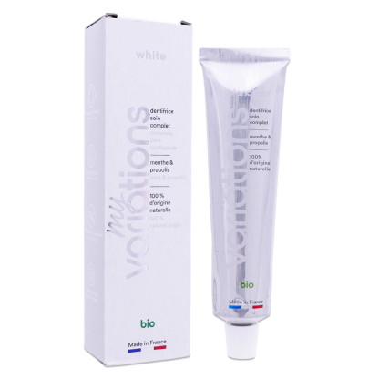 MY VARIATIONS WHITE DENTIFRICE SOIN COMPLET BIO 75ML est en vente en ligne sur le site de votre parapharmacie à prix discount, offrant une solution naturelle pour un sourire éclatant.