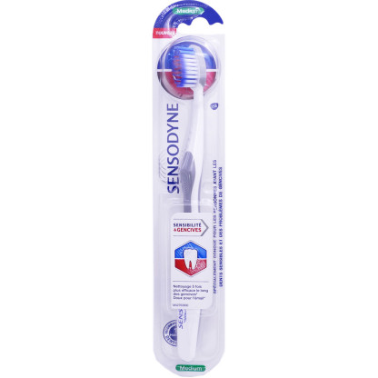 La Brosse à dents Sensibilité & Gencives discount SENSODYNE, la brosse à dents qui nettoie efficacement tout en protégeant les dents et gencives sensibles, dans votre parapharmacie en ligne à prix discount. Brins Médium
