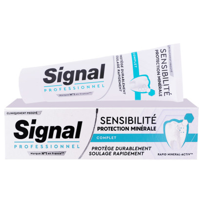 SIGNAL DENTIFRICE SENSIBILITÉ PROTECTION MINERALE COMPLET 75ML est en vente en ligne sur le site de votre parapharmacie à prix discount, offrant un soin quotidien spécialement formulé pour les dents sensibles.