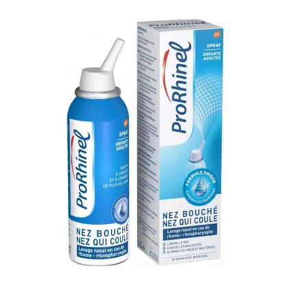 ProRhinel spray pour enfants et adultes de NOVARTIS, la solution nasale en spray pour laver en douceur le nez, fluidifier efficacement les mucosités, réduire l’obstruction nasale, combattre les rhumes et les rhinopharyngites.