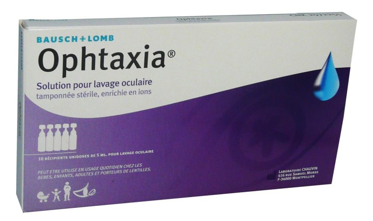 Le laboratoire BAUSCH & LOMB conçoit des produits pour prendre soin des yeux, de la peau, de la sphère ORL destinés à toute la famille pour le bien-être au quotidien. Ophtaxia Solution oculaire nettoie les yeux tout en douceur pour éliminer les impuretés au quotidien. Sa solution tamponnée stérile est riche en ions et équilibrée en électrolytes qui contiennent du potassium, sodium, calcium et magnésium. Ces actifs présents naturellement dans les larmes respectent le pH lacrymal pour une utilisation en toute sécurité et une haute tolérance. La solution stérile peut être utlisée directement avec le jet de l’unidose, à l’aide d’une compresse ou en bain oculaire à l’aide d’une œillère stérile. Pratique ces unidoses peuvent être emmené partout avec soi.