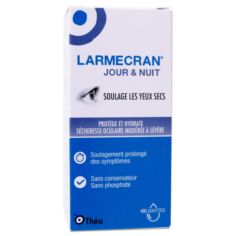 THEA LARMECRAN JOUR ET NUIT 10ML est en vente en ligne sur le site de votre parapharmacie à prix discount, conçu pour soulager la sécheresse oculaire modérée à sévère grâce à sa formule innovante.