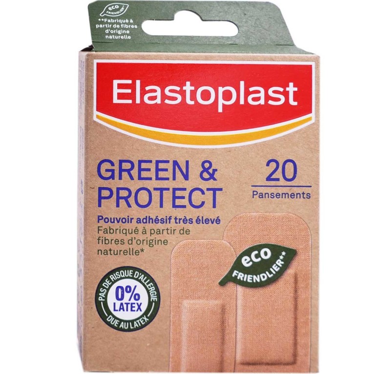 Pansement GREEN PROTECT discount ELASTOPLAST, le pansement avec compresse en fibres naturelles, dans votre parapharmacie en ligne à prix discount, qui protège les plaies superficielles du quotidien (petites coupures, égratignures,…).