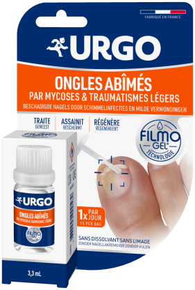 Filmogel Ongles Abîmés des laboratoires URGO à prix discount, la solution sous forme de pansement liquide, pour renforcer et réparer les ongles abîmés par une mycose ou un traumatisme léger, dans votre parapharmacie en ligne discount. A partir de 3 ans