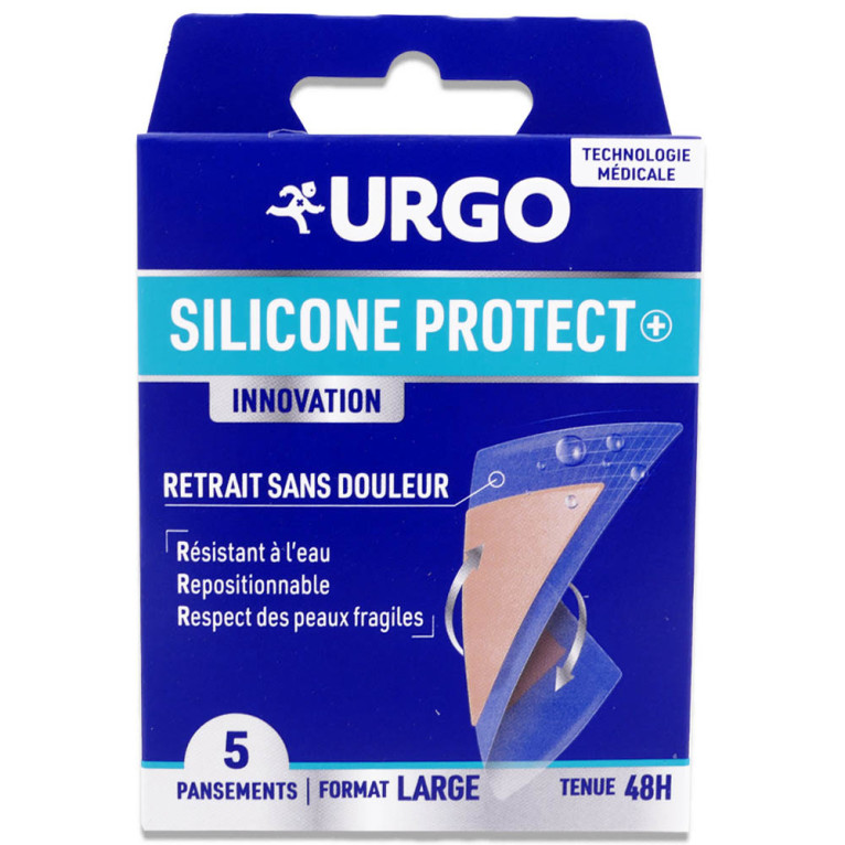 URGO SILICONE PROTECT+ PANSEMENTS FORMAT LARGE X5 est en vente en ligne sur le site de votre parapharmacie à prix discount, idéal pour protéger les petites blessures de toute la famille grâce à sa technologie en silicone.