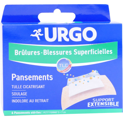 URGO est une marque qui propose des dispositifs médicaux efficaces et innovants pour soigner tous les petits maux du quotidien : coupures, ampoules, aphtes, lombalgies… URGO Brûlures, blessures superficielles Pansements est spécialement conçu pour soulager et favoriser la cicatrisation des brûlures du 1er degré et du 2nd degré superficiel (cloque) ainsi que des blessures superficielles. Le tulle d’URGO issu de la technologie lipidocolloïde associe des particules d’hydrocolloïde à de la vaseline pour soulager la douleur et accélérer le processus de cicatrisation sans adhérer à la plaie pour un retrait tout en douceur.