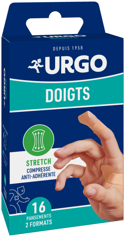 URGO est une marque qui propose des dispositifs médicaux efficaces et innovants pour soigner tous les petits maux du quotidien : coupures, ampoules, aphtes, lombalgies…Les pansements spécial doigts URGO, en boite de 16 unités en 2 formats : droits longs pour les plaies entre les doigts et papillon pour la pulpe des doigts, sont spécialement conçus pour protéger efficacement les petites plaies spécifiques des doigts. Ces pansements résistants à l’eau et micro-aérés possèdent une compresse qui ne colle pas à la plaie, et une texture extensible qui agit comme une seconde peau et s’adapte à tous les mouvements des doigts.