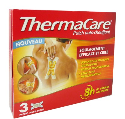 La marque THERMACARE des laboratoires Pfizer est composée de patchs aux propriétés chauffantes et apaisantes pour soulager les douleurs musculaires, articulaires, courbatures,… naturellement sans ingrédients chimiques ou médicamenteux. Les patchs chauffants soulagent les muscles et articulations douloureuses au niveau du dos, des bras ou des jambes naturellement par la chaleur qui est produite par les alvéoles du patch. Au contact de la peau ces alvéoles libèrent des agents thermoactifs à l'air et produisent de la chaleur. Rapidement les douleurs s'estompent pour reprendre un quotidien normal. Ces patchs sont conçus pour être appliqué sur les parties du corps ciblées qui sont douloureuses. Inodores et fins, ils sont invisibles sous les vêtements et ne gênent pas lors de mouvements.