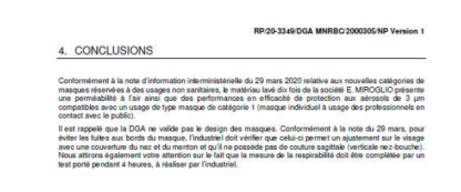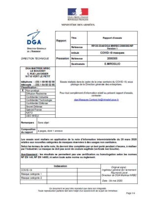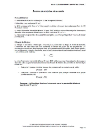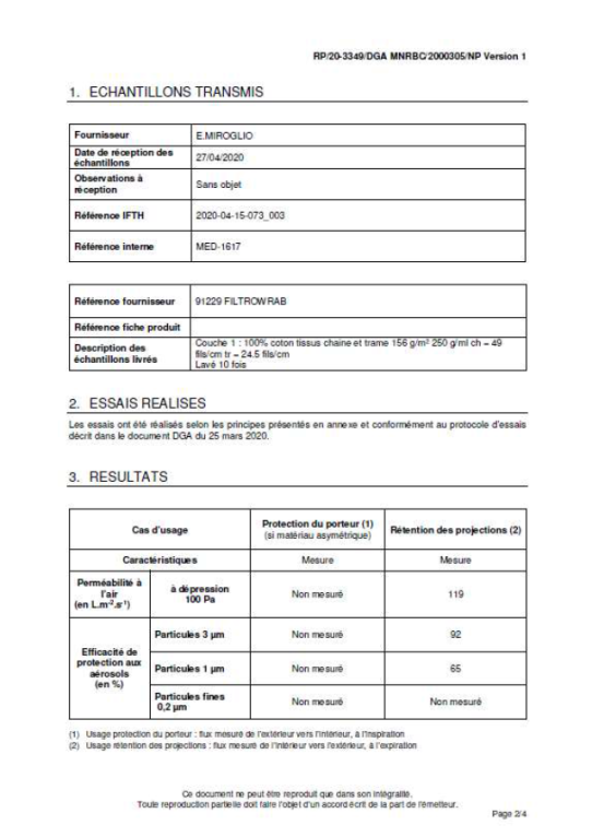 Le masque lavable en tissus (coton) est un masque destiné aux enfants, qui a été testé. Il a démontré que son matériau a une perméabilité à l’air et des performances en efficacité de protection aux aérosols de 3µm semblable à l’usage d’un masque de type masque de catégorie 2 (masque de protection à visée collective pour protéger l’ensemble d’un groupe portant ces masques). Il est réutilisable et lavable jusqu’à 10 fois.