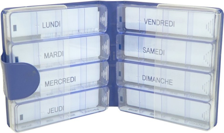 Pilulier MEDIMAX, le pilulier grand format en poche velcroc pour s'emporter partout et ne pas oublier la prise des médicaments.