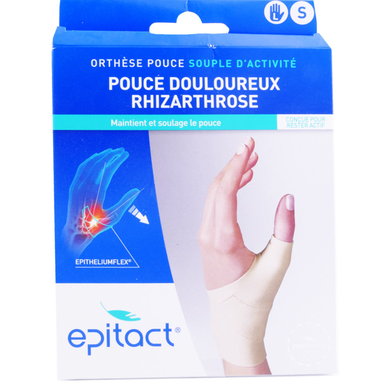 Le laboratoire EPITACT a conçu des produits pour apporter soin et confort aux problèmes de pieds. L’orthèse Pouce Souple d’activité corrige en immobilisant et luttant contre la rhizarthrose qui fait souffrir. Elle permet de faire un écart entre le pouce et l’index pour que le pouce soit au repos et ainsi évite tout traumatisme grâce à son tissu et son tendon en silicone Eptheliumflex qui maintient la chaleur locale et réduit la douleur. En l’utilisant plusieurs fois, le pouce sera progressivement ré-axé. Souple, discrète et ultrafine, l’orthèse se fera oublier toute la journée. L’orthèse se lave en machine à 40°C pour une bonne protection longue durée