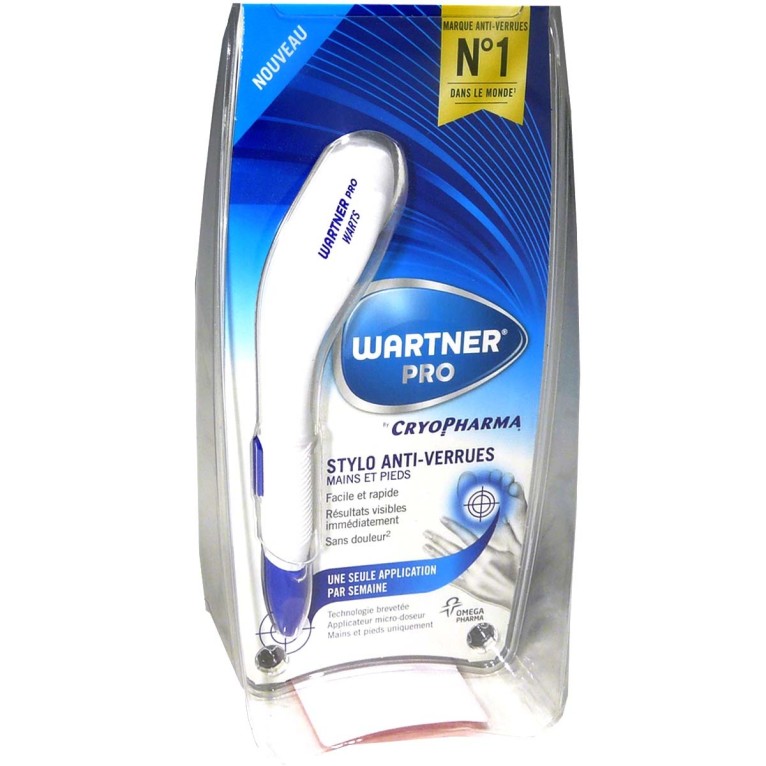 Le groupe Omega Pharma, acteur européen incontournable sur le marché des produits de santé familiale et de bien-être, développe de nombreuses marques reconnues pour la qualité, la sûreté et l’efficacité de leurs produits. Le traitement rapide des verrues Wartner Pro Cryopharma élimine efficacement les verrues des mains et des pieds et précisément par la cryothérapie grâce à son gel à base d’acide trichloracétique, en gelant la verrue au cœur de la racine et en participant au renouvellement des cellules cutanées. Instantanément les résultats sont visibles, la verrue diminue. Dès la première semaine, la verrue se détache laissant place à une peau saine. Pratique en format stylo avec un embout strié, le Traitement Wartner Pro Cryopharma permet une application très précise et une utilisation simple